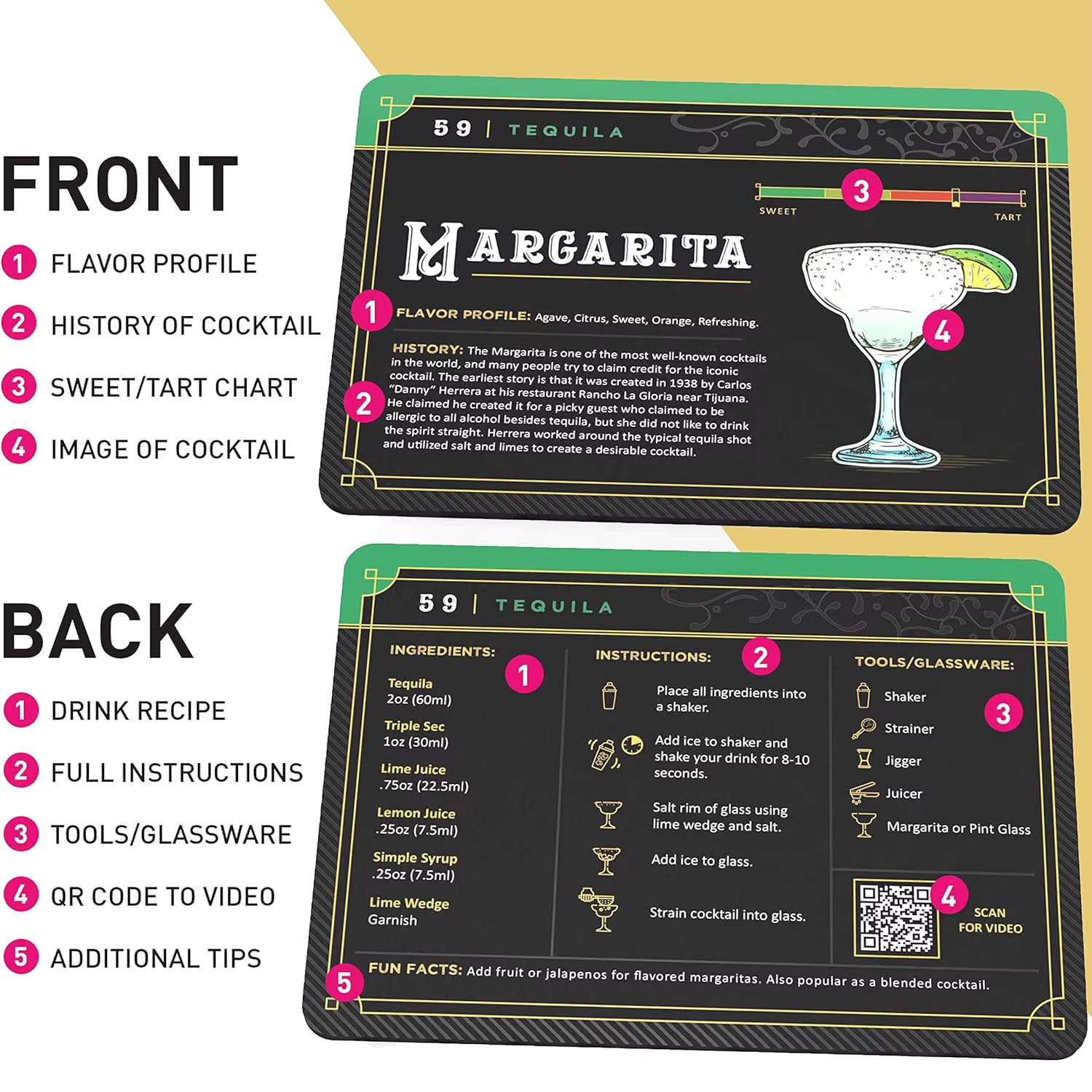 - Learn While You Sip : Learn over 100 cocktail recipes.Each card includes flavor profiles and cocktail history to elevate your mixology knowledge.